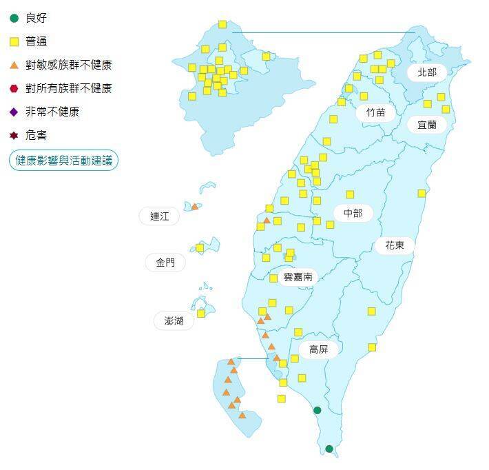 今日各地空氣品質概況。(圖擷取自環保署空氣品質監測網)
