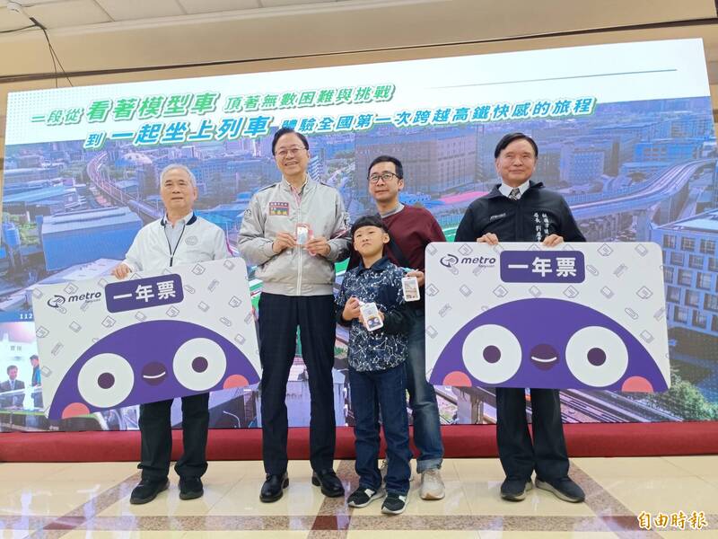 日前參加捷運綠線工程參訪的孫顥,許願希望小朋友搭捷運可以免費,12日綠線成果展開幕,市長張善政及桃園捷運公司董事長沈志藏化身耶誕老人,送給他及家長機捷1年票。(記者鄭淑婷攝)