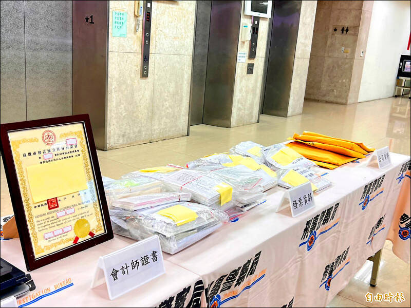 刑事局破獲首宗會計師事務所協助詐團設立22家人頭公司詐騙案,查扣贓證物。(記者邱俊福攝)