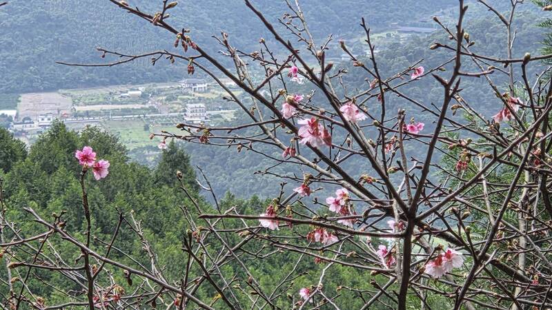 宜蘭縣員山鄉燈篙林道是著名賞櫻勝地,其中肖楠步道的河津櫻已搶先開放。(記者游明金攝)