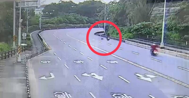 獼猴亂竄馬路,女騎士閃避不及慘摔。(民眾提供)