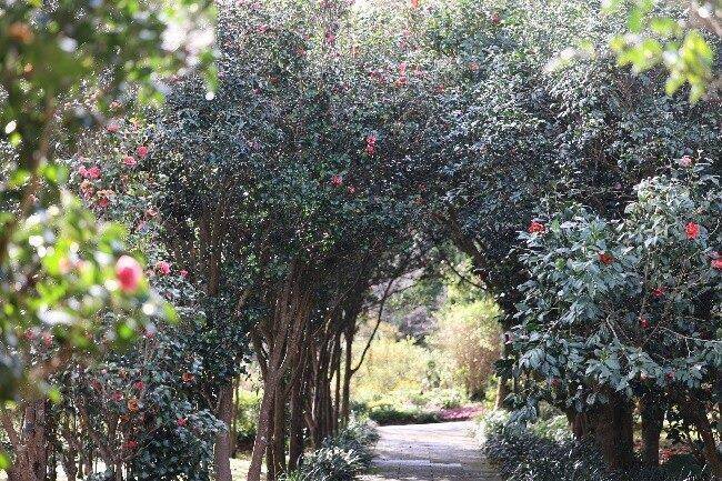 台北市公園路燈工程管理處指出,花卉試驗中心擁有台灣歷史最悠久的茶花園,園區蒐集超過300種茶花品種,在獨特的天然氣候與微酸性土壤條件下,孕育出數千株茶花,成為茶花生長的理想場域。
