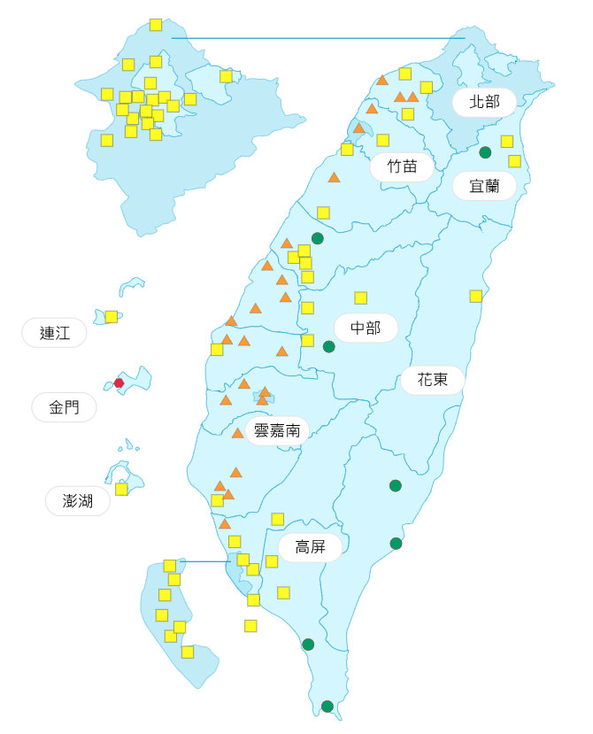 空氣品質方面,根據環境部空氣品質預報資訊顯示:今日環境風場為東北風,中南部位於下風處,污染物易累積;北部、中南部地區及馬祖清晨易有局部霧或低雲影響能見度;宜蘭、花東空品區為「良好」等級;北部、竹苗、中部、雲嘉南空品區及澎湖為「普通」等級,雲嘉南零星地區短時間可能達橘色提醒等級;高屏空品區及馬祖、金門為「橘色提醒」等級。