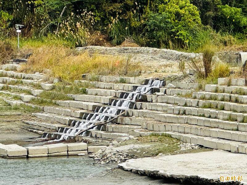 進入枯水期,仁義潭進水潺潺細流。(記者蔡宗勳攝)