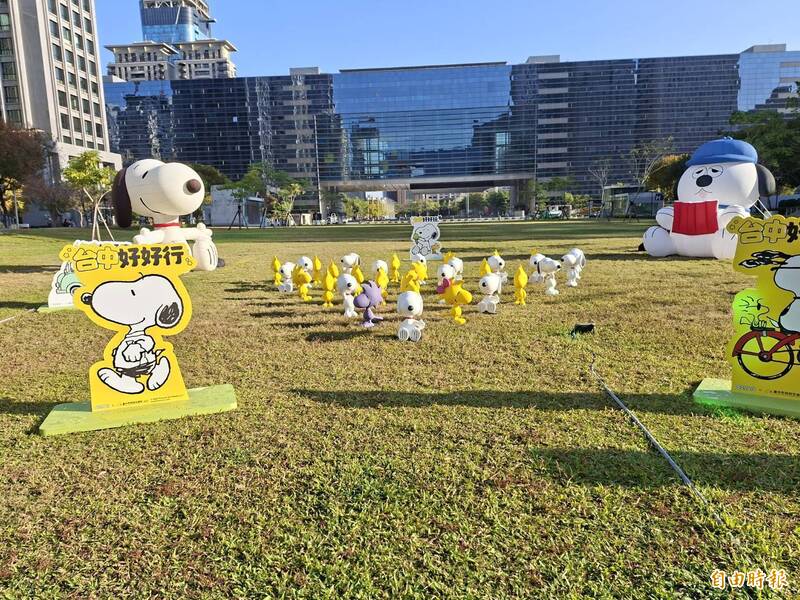 台中市府即日起至2月22日在府會廣場展示大大小小的史努比家族。(記者蘇金鳳攝)