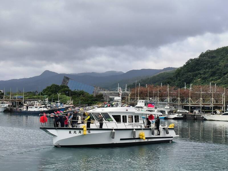 東北角管理處今天在烏石港碼頭舉行新造公務船「東北角五福」首航儀式,並結合舞獅祈福,拋送麻糬、包子及餅乾,再現百年漁村傳統「擲福」習俗,宣告這艘新成員投入東北角及宜蘭海岸的服務行列。
