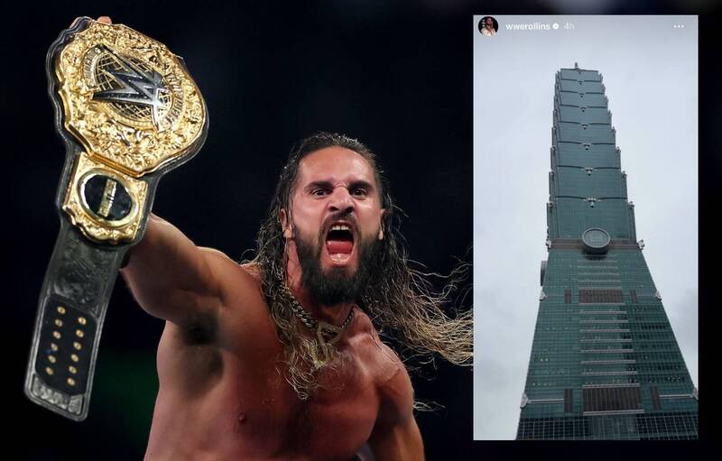 WWE巨星羅林斯(Seth Rollins)現身台灣,還在IG限時動態上上傳了101大樓影片。(左法新社,右取自羅林斯IG)