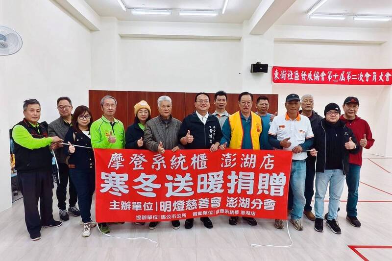 明燈慈善會與摩登系統櫃,寒冬送暖捐贈家具。(馬公市公所提供)