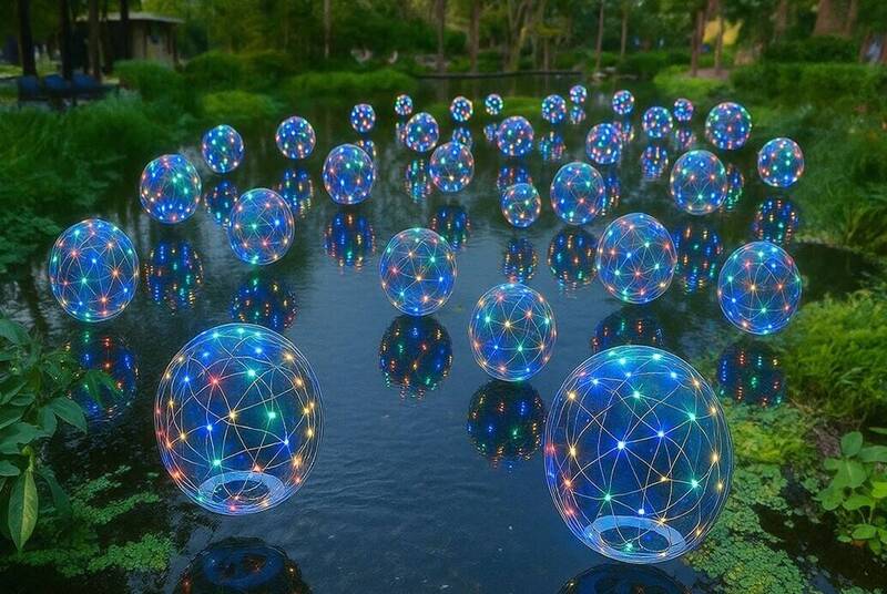 鳳山光之季以多顆彩色發光球映照水面,隨波漂流交織浮光美景。(示意圖)
