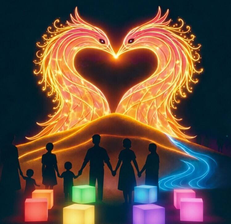 鳳山光之季主燈「我愛鳳山」以吉祥物鳳凰為意象,融入山形輪廓與水波燈紋,象徵鳳山地景與曹公圳綿延不息。(示意圖)
