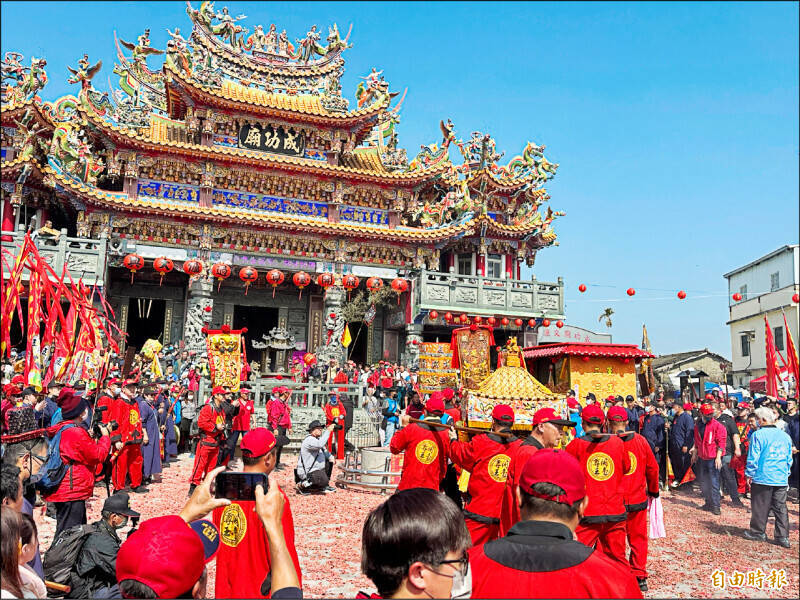 「五股開臺尊王過爐大典」,3月8日將從大埤鄉移駐斗南鎮靖興里紅壇。圖為去年過爐盛況。(記者李文德攝)