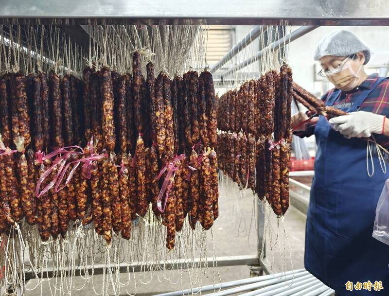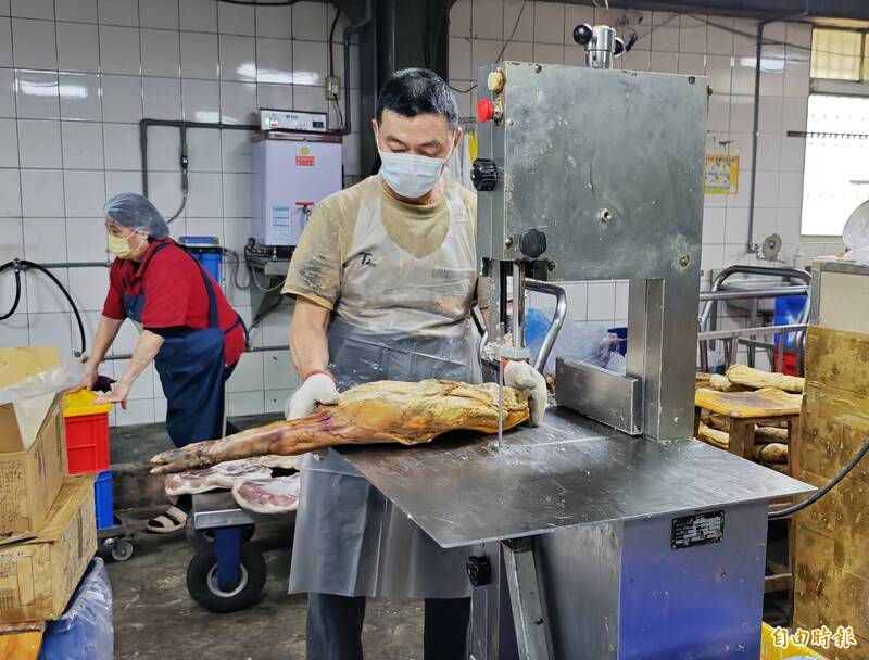 台南仁德區萬有全食品公司醃製的金華火腿,國內供應量最大,年節熱銷。(記者吳俊鋒攝)