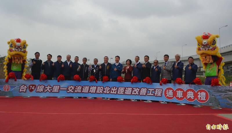 為方便台中大里、仁化工業區,以及十九甲和大里溪南地區民眾聯外,地方前後歷經10年爭取增設台74線大里十九甲北出匝道,整起工程斥資7.24億,自2024年1月開工後,已提前於本月完工,交通部今天舉行通車典禮,包括交通部長陳世凱、台中市副市長黃國榮、立委何欣純、羅廷瑋等人都出席,強調將能縮短行車距離約3.5公里,節省通勤時間約20分鐘,並宣布今晚7點正式開放通行。