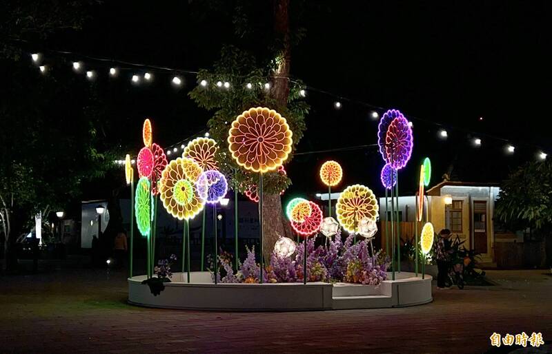 屏東燈節勝利星村燈區燈飾「記憶之花」。(記者羅欣貞攝)