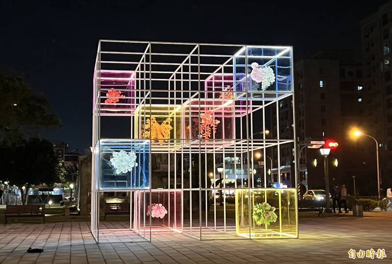 屏東燈節勝利星村燈區燈飾「花立方」。(記者羅欣貞攝)