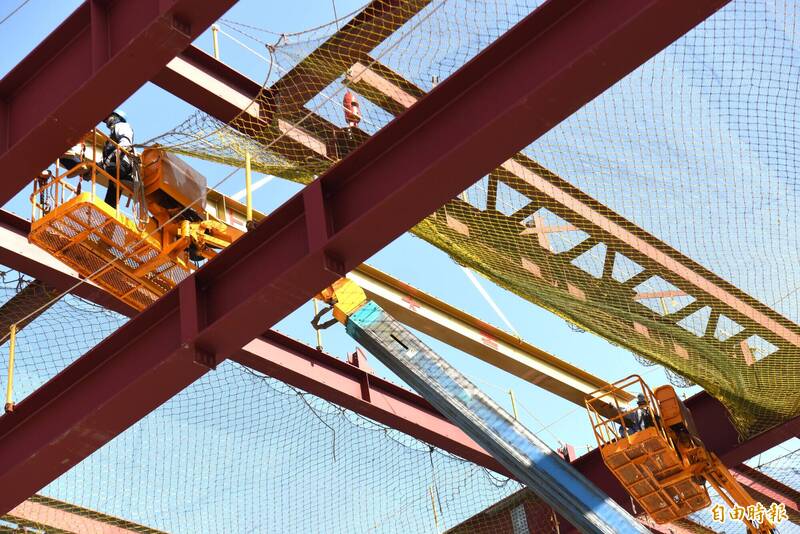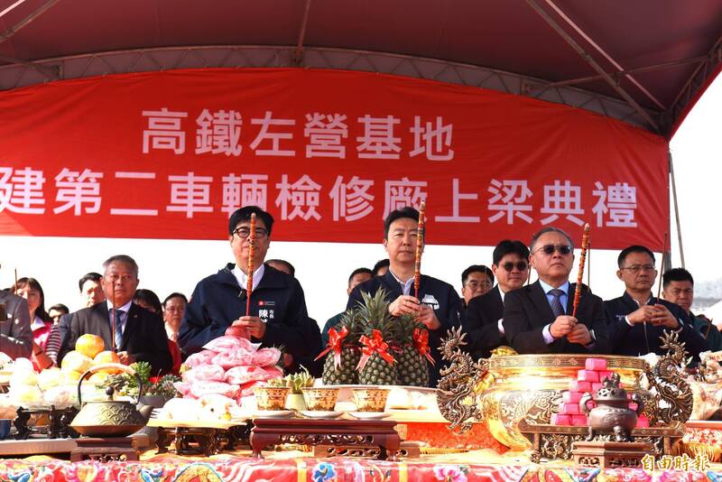 高鐵公司今天舉辦左營第二車輛檢修廠上梁典禮。(記者吳亮儀攝)