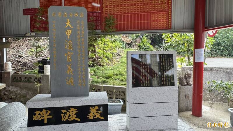 大甲溪義渡碑重建,設置於坑口公廣場。(記者張軒哲攝)