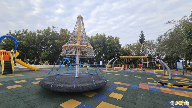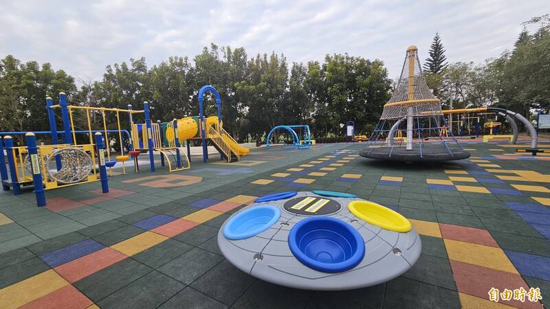 彰化縣秀水鄉龍騰公園又新增兒童遊具,成為親子遊樂好去處。(記者劉曉欣攝)
