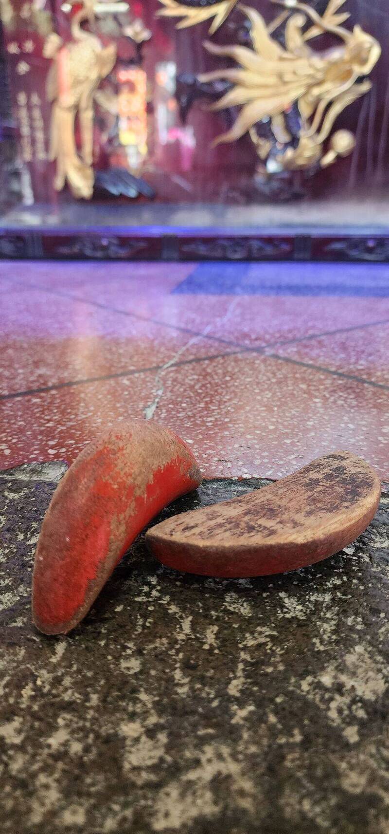 呂林小鳳說,擲出第3次「立筊」則是1名經常來三元宮參拜年輕男子,為求個人事業運途,特別向三官大帝擲筊請示,當場擲出最難的圓弓弧形方式站杯,也就是筊杯以最尖端的2個腳支撐站立,也讓現場民眾嘖嘖稱奇。