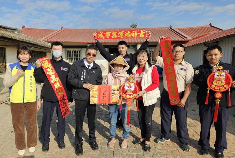 台南市佳里區公所展開「歲末展愛心、居家清掃」活動,為獨老協助環境清潔、貼春聯、送上慰問品。(圖由公所提供)