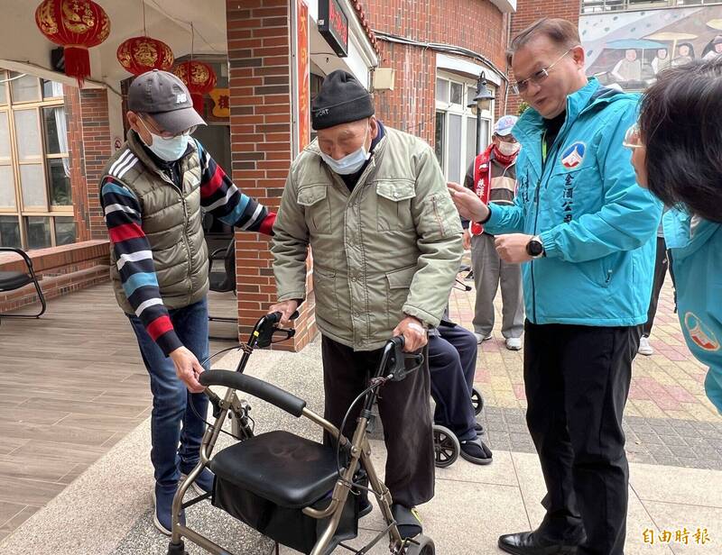 金酒公司董事長吳昆璋(右二)與大同之家長者話家常。(記者吳正庭攝)