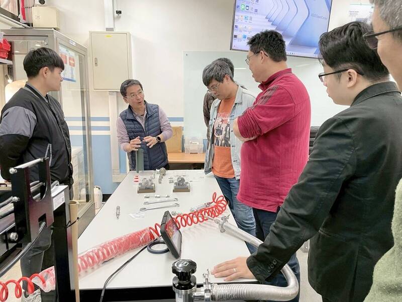 透過大專專業師資引導,讓高中職教師能更具體掌握產業端設備運作與教學應用方向。(高雄市教育局提供)