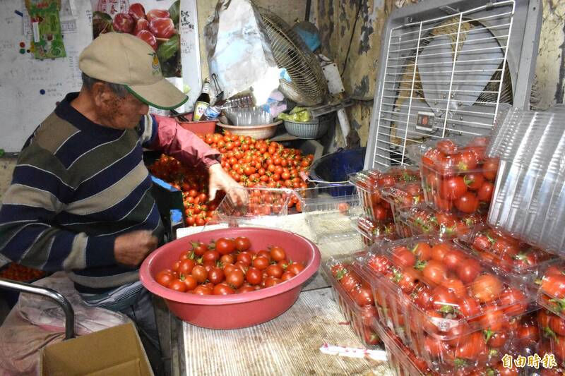 果農吳坤值栽種約4甲地小番茄,他表示,今年鹽水小番茄產量增加至少2成,拍賣價低於去年同期,但盤商收購的產地價,中品每台斤平均3、40元,上品平均仍有5、60元以上。他認為進口櫻桃降價,多少也搶走小番茄市場,影響小番茄價格。