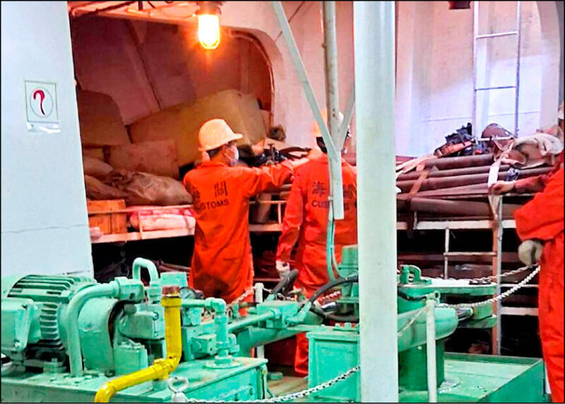 高雄關登檢環明輪,在艙內起獲15公斤一級毒品海洛因。(高雄關提供)