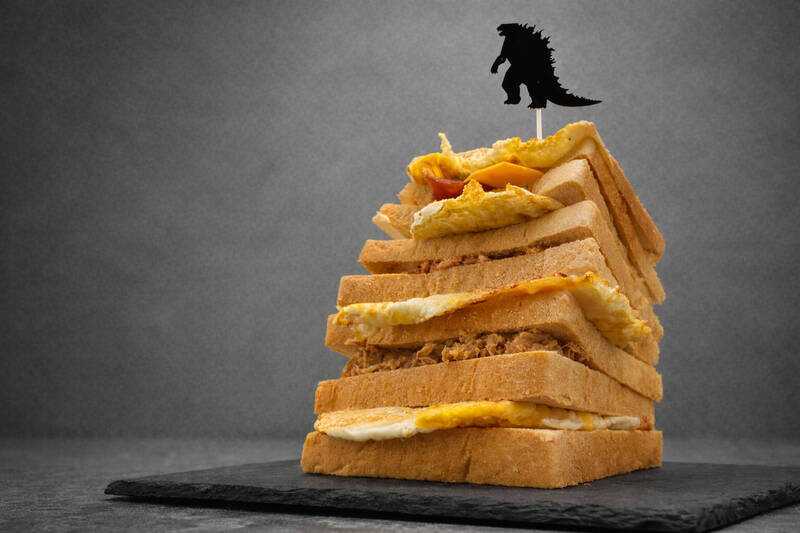 老江紅茶牛奶推出怪獸爆擊摩天大樓吐司塔,挑戰民眾的怪獸胃口!(圖由經發局提供)