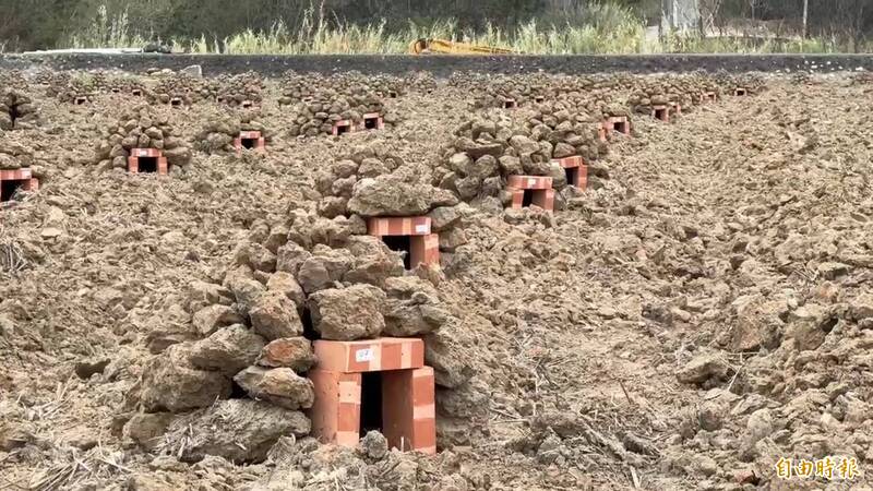 通霄鎮公所將於2月7日在城北里社區活動中心旁農田間舉辦焢窯活動,大量土窯排列整齊,引發討論。(記者彭健禮攝)