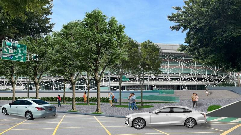 桃園巨蛋戶外景觀改善工程預計10月完工,圖為示意圖。(圖由工務局提供)