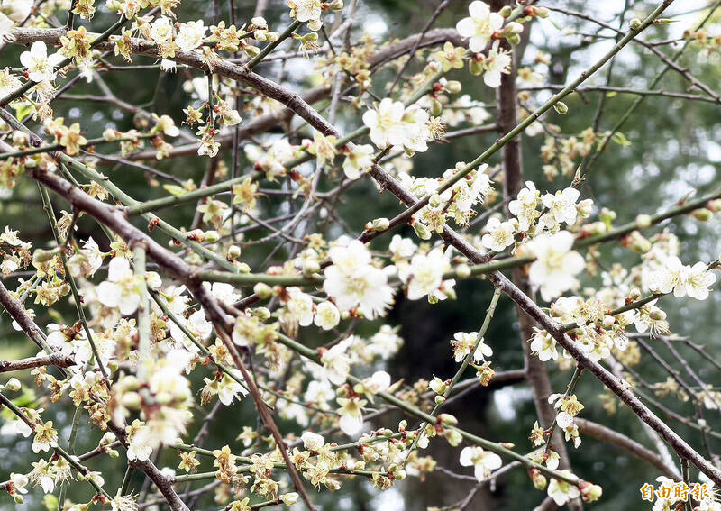 桃園復興角板山公園梅花雪白花況進入尾聲。(記者李容萍攝)