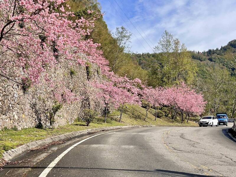 桃園市復興區北橫公路沿線、拉拉山櫻花盛開時,美不勝收,美景不輸日本,圖為往年開花盛況。(資料照,桃市風管處提供)