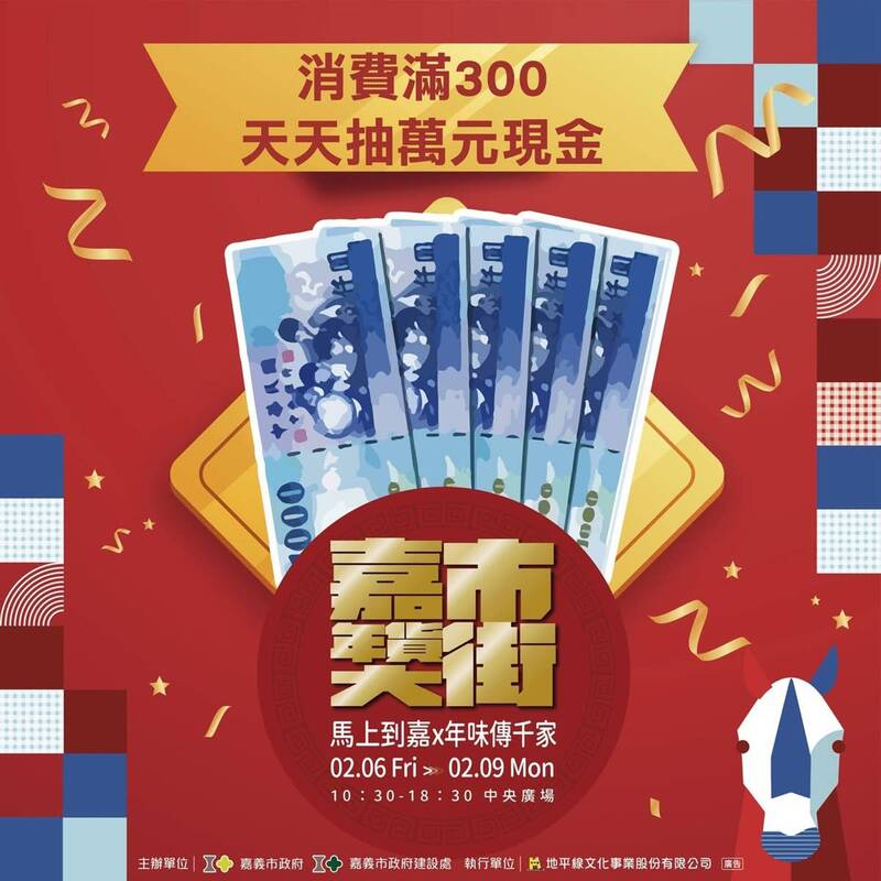 嘉義市年貨大街消費滿額抽現金。(嘉義市政府提供)