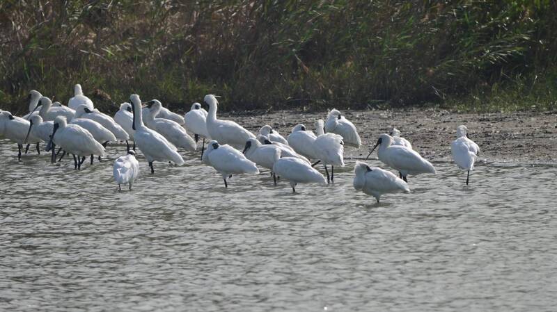 台南社大環境小組研究員晁瑞光表示,每年農曆年前後,黑面琵鷺在北返前都會到處覓食,在南區四鯤鯓濱海公路一帶都有機會近距離看到牠們的身影。