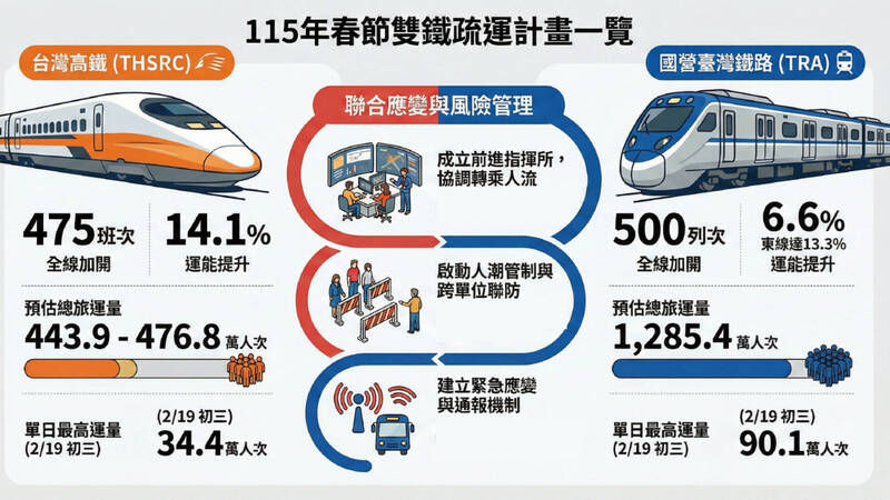 交通部整理各春節管制、雙鐵疏運措施。(圖由交通部提供)