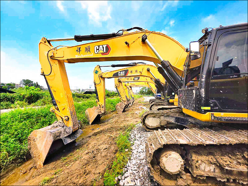 高市美濃大峽谷盜採案,橋頭地檢署昨偵結起訴前市議員特助石麗君等12人,圖為檢方查扣怪手等證物。(橋檢提供)