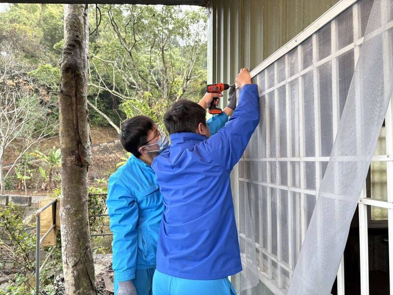 社工人員協助許翁裝設紗窗。(新竹縣政府提供)