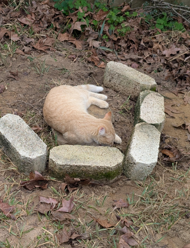 一名飼主近日下葬了他養了18年的愛貓,但另一隻橘貓整天都躺在逝去的愛貓的墳墓上不願離去,思念舉動惹哭網友。(擷取自I_dont_punch_women/Reddit)