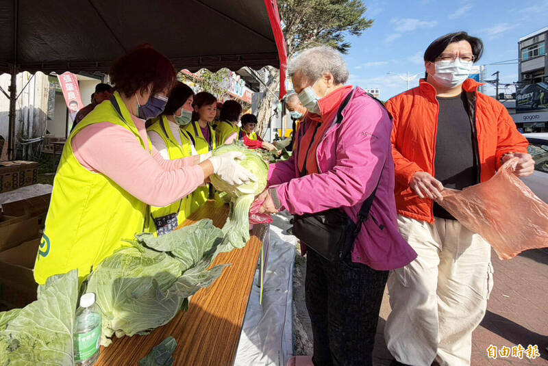 民眾購買10元高麗菜。(記者李容萍攝)