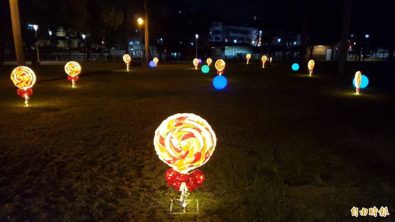 大型發光棒棒糖成為打卡熱點。(記者陳文嬋攝)