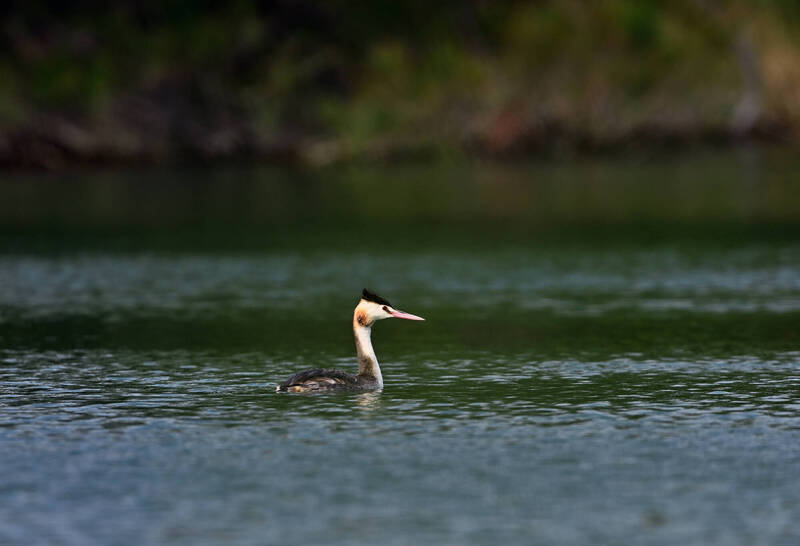 冠鷿鷈這次現身卑南溪生態池,台東縣府呼籲切勿前往戲水。(台東縣府提供)