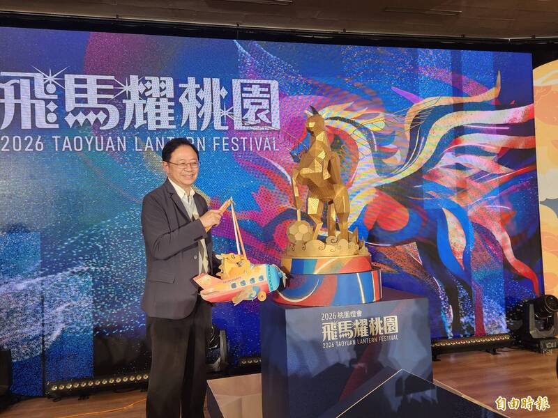 桃園市長張善政、金馬獎影后「國民阿嬤」陳淑芳下午出席燈會宣傳記者會,2人都期待主燈秀吸引人潮,小提燈讓大小朋友們愛不釋手。「飛馬耀桃園」主燈以超過300個金屬切面,組構出飛馬奔騰的姿態,翅膀運用「多軸翼載機械臂」技術達到動態展翼效果,搭配煙霧、燈光、雷射特效,演出「雲啟、集眾、凌雲、御空、啟航」等5幕劇情,燈會期間每天晚上6點起,每30分鐘展演1次;小提燈「馬上發」則採飛機造型,由生肖「馬吉」擔任機長,象徵穩健前行,活動期間的國定假日與元宵節,在燈會現場發放。