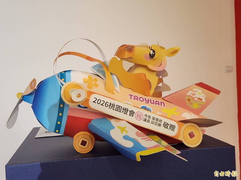 2026桃園燈會「飛馬耀桃園」即將25日到3月8日在虎頭山創新園區、南崁溪水岸、三民運動公園,分別以「未來光域」、「森韻流域」、「dtto friends樂園」特色燈區登場,其中,高13公尺、展翼18公尺的「飛馬耀桃園」主燈設置在虎頭山創新園區,模型今天與「馬上發」小提燈同步亮相。
