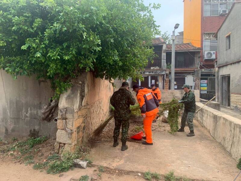 金防部及海巡署弟兄加入清潔週環境打掃行列。(擷自金沙鎮公所臉書)
