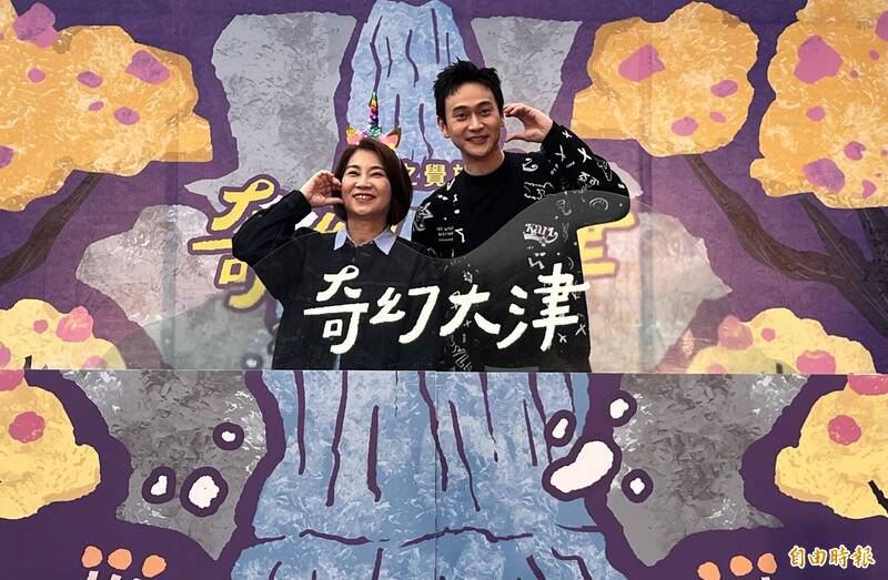 屏東縣長周春米(右)和劉冠廷(左)為奇幻大津揭幕。(記者羅欣貞攝)