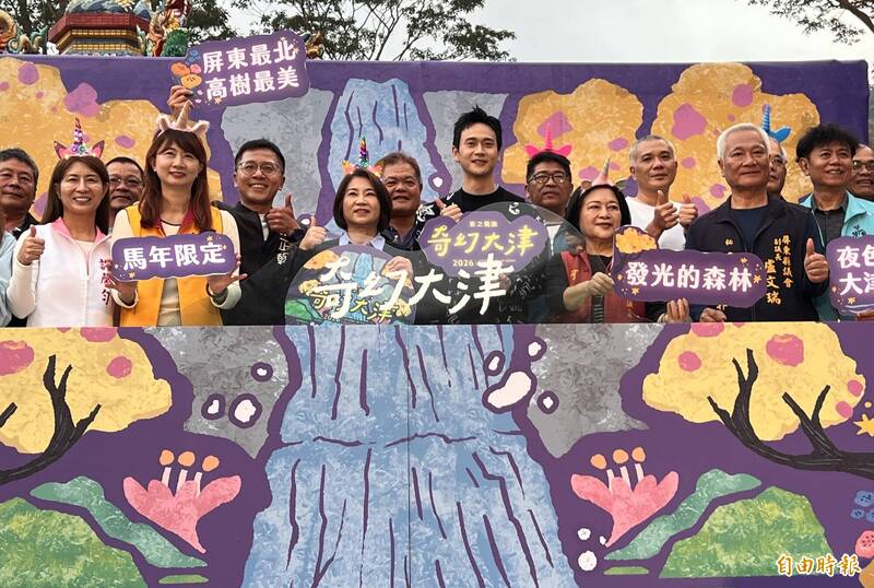 周春米說,高樹鄉擁有豐富的山林與瀑布資源,縣府以沉浸式藝術體驗為核心,將夜間光影藝術與大津瀑布的自然地景結合,持續打造「奇幻大津」成為屏北最具代表性的夜間觀光品牌。去年受颱風影響,大津步道嚴重受損停辦,歷經1年的修復與安全檢視,今年終於順利復辦,讓民眾能再次走進山林,欣賞夜間光影之美。