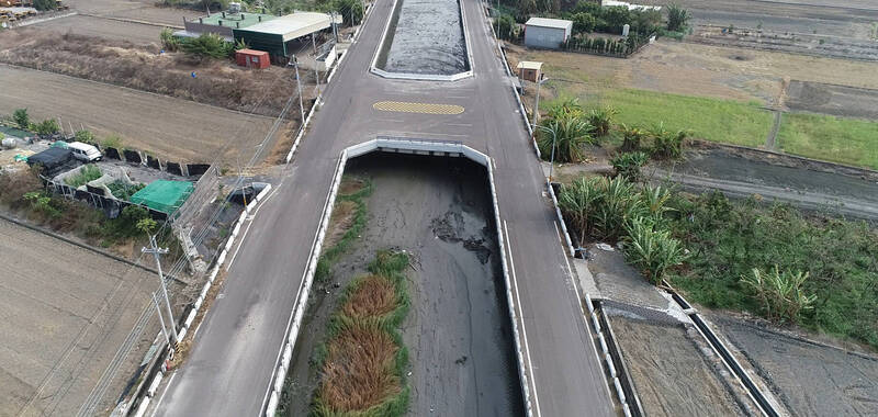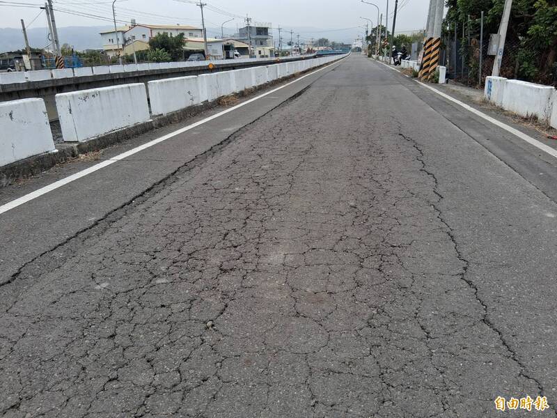 彰化員林石笱排水堤岸道路橋梁,存在高低起伏問題,機車稍有偏移就可能摔倒。(彰化縣政府提供)