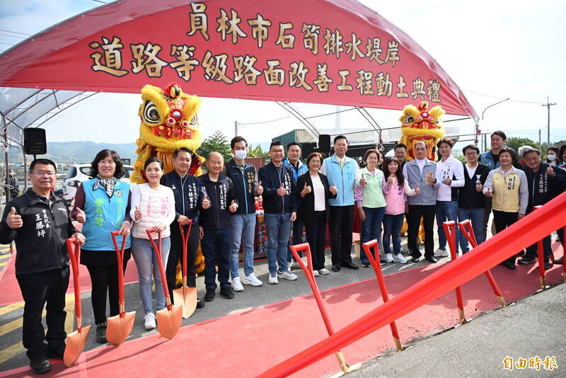 員林「石笱排水堤岸道路改善工程」,今日在石笱橋舉行動土儀式,預計最快今年6月完工。(記者陳冠備攝)