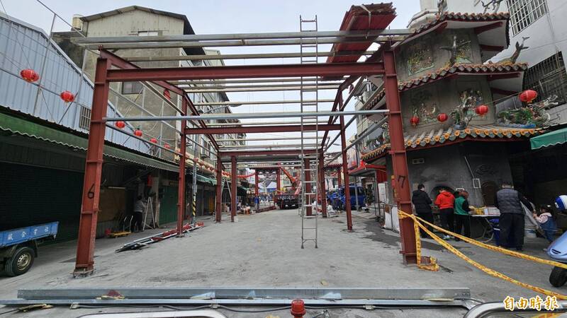 彰化南瑤宮修復期間搭的臨時行宮已拆除。(記者劉曉欣攝)